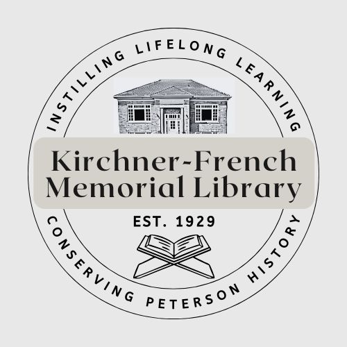 Kirchner-French Memorial Library was established in 1925 when Lena Kirchner French willed a farm to the town of Peterson for the erection, contents and maintenance of a library. Lena was a member of the first family of settlers in Peterson and taught school in here at age 16. Lena’s goal was to establish a library in Peterson so that persons of all ages could be exposed to the joy of reading and to life long learning. Because of the depression, the actual building was not built until 1937 with WPA assistance. In the intervening years members of the local Federated Women’s Club, the Tuesday Club operated a temporary library in the brick building on the northeast corner of Main Street.